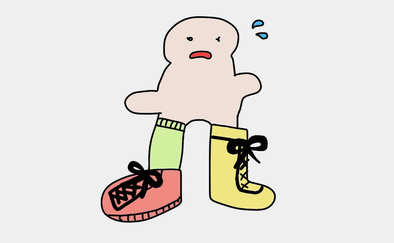 学校にくるのでくつが左右ばらばら。