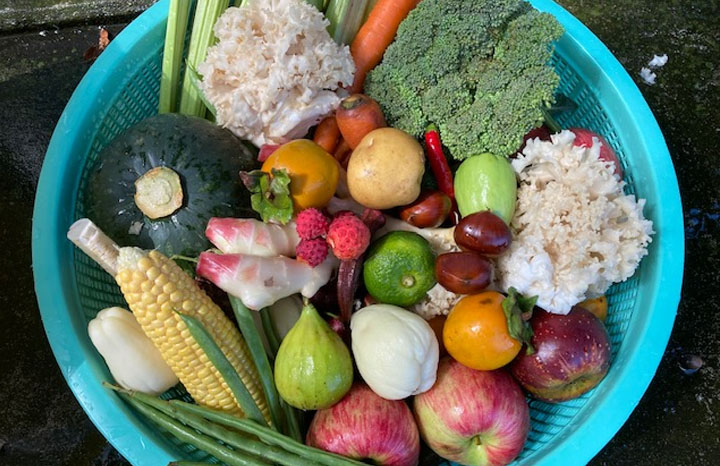 【 内 容 】 直売所にて果物、野菜を購入し、野山で木の実を採取して里山で仕込み作業をします。