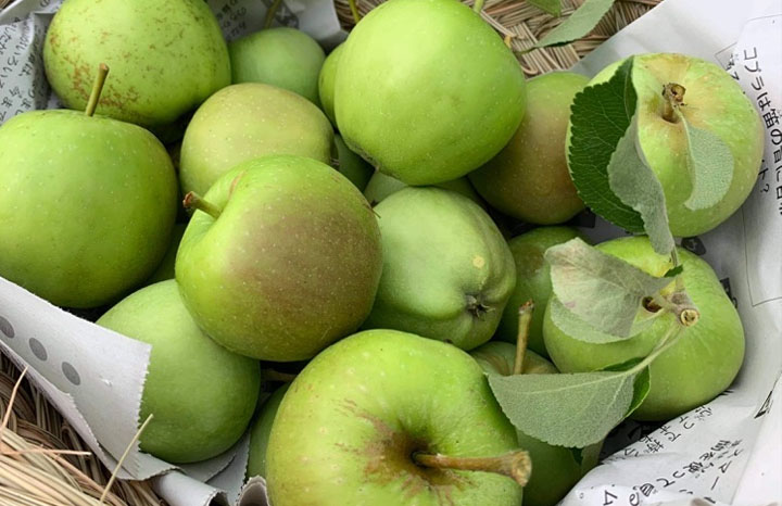 【 内 容 】 摘果りんご(リンゴポリフェノールが成熟リンゴの約10倍の濃度で含まれている)と梅やブルーベリー、野草を採取しりんご園で仕込み作業をします。